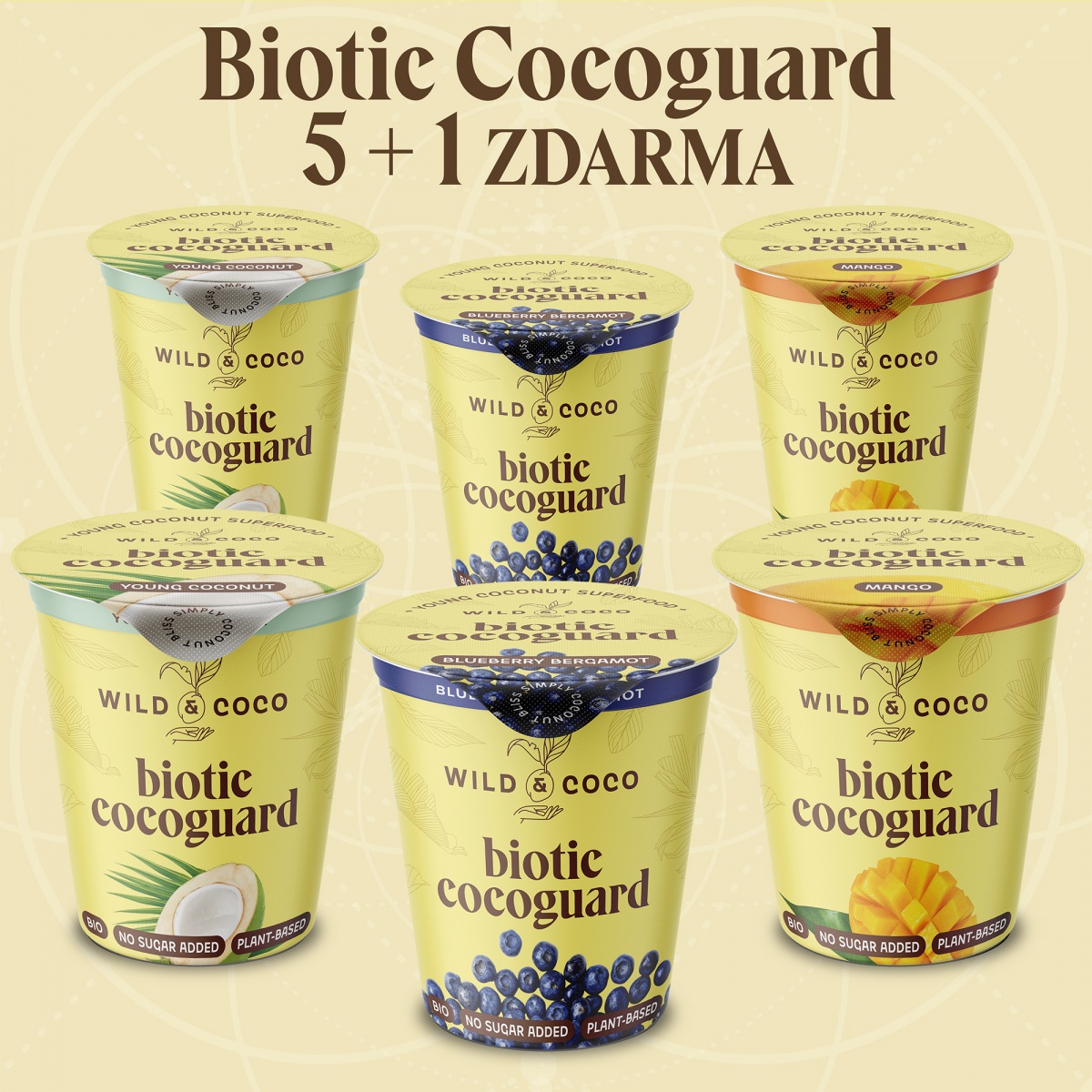Balíček obsahuje 6 kelímků se 150 g Biotic Cocoguardu v příchutích Mango, Višeň a Young Coconut, se kterými zpestříte jakoukoliv svačinu, snídani i dezert. A ten šestý od nás máte jako DÁREK!