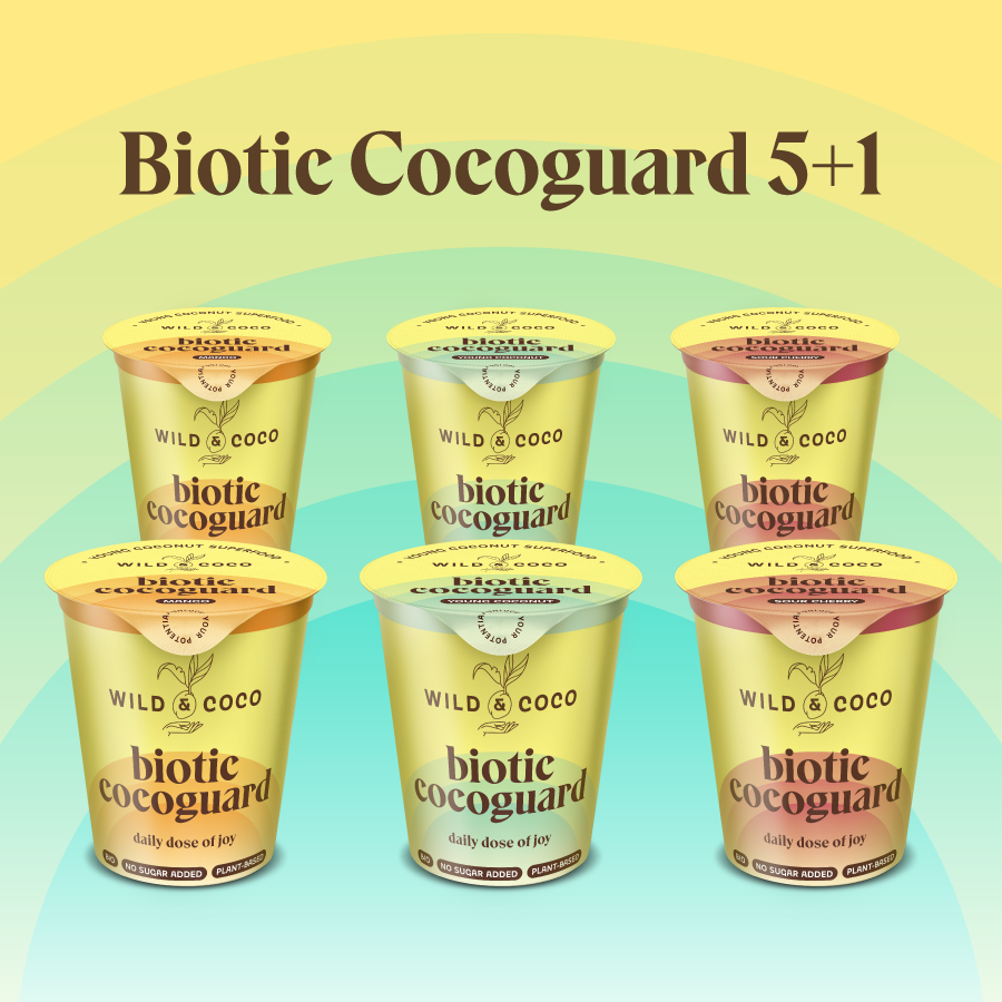 Balíček obsahuje 6 kelímků se 150 g Biotic Cocoguardu v příchutích Mango, Višeň a Young Coconut, se kterými zpestříte jakoukoliv svačinu, snídani i dezert. A ten šestý od nás máte jako DÁREK!