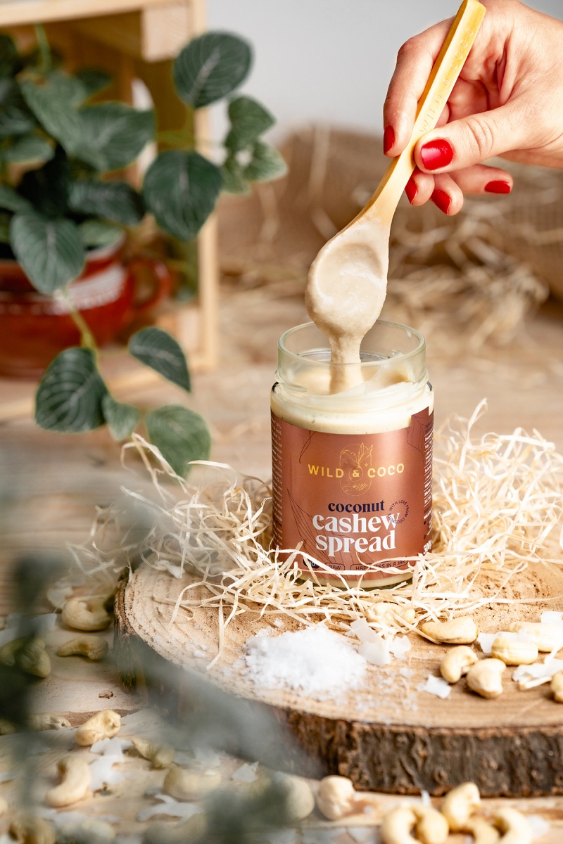Eine Mini-Version unseres Cashew-Kokos-Aufstrichs! Wenn dich unser Kokosnuss-Cashew-Aufstrich schon einmal in Versuchung geführt hat, das Glas aber zu groß war, haben wir für dich nun eine kleinere Version - zum Probieren, für unterwegs, für die Handtasche, für die Hosentasche... wo auch immer dieser kleine Partner dich begleiten kann!