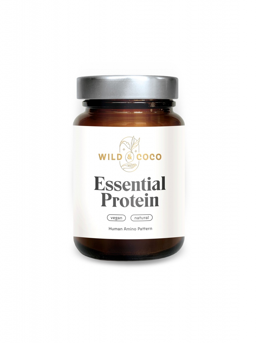 Essential Protein enthält nur essentielle Aminosäuren, die der Körper nicht selbst herstellen kann und die mit der Nahrung aufgenommen werden müssen.