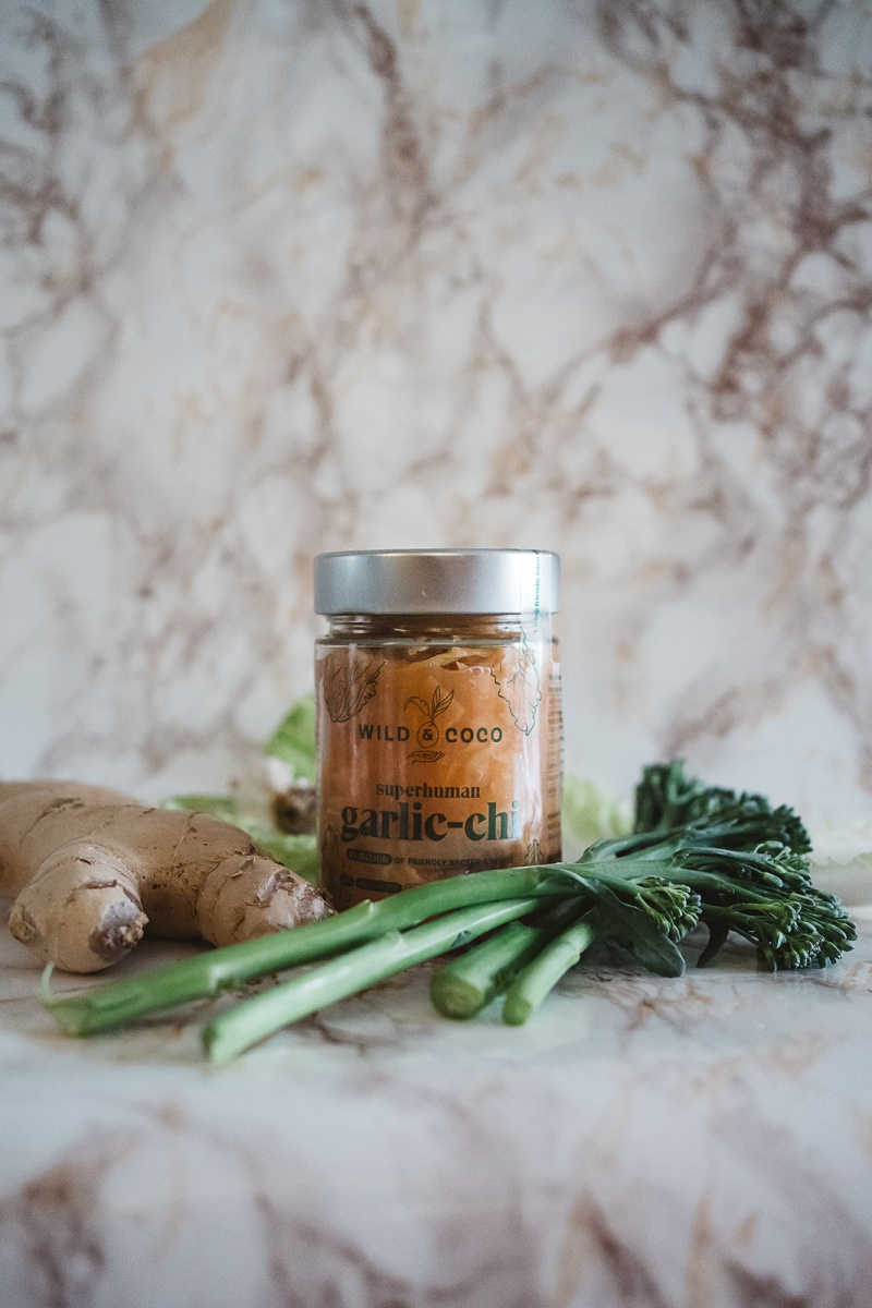 Wir stellen dir Garlic-chi vor – die Neuheit in unserer Linie fermentierten Gemüses, in der Knoblauch die Hauptrolle spielt. Dieser wird bereits seit Jahrhunderten als König der natürlichen Zutaten zur Unterstützung des Organismus verehrt. Die traditionelle Basis aus Weißkohl und Karotten haben wir um einen bedeutenden Anteil an Knoblauch, Zwiebeln und Ingwer bereichert. So ist ein nährstoffreiches Superfood entstanden, das dich mit seiner reinen Energie auflädt.