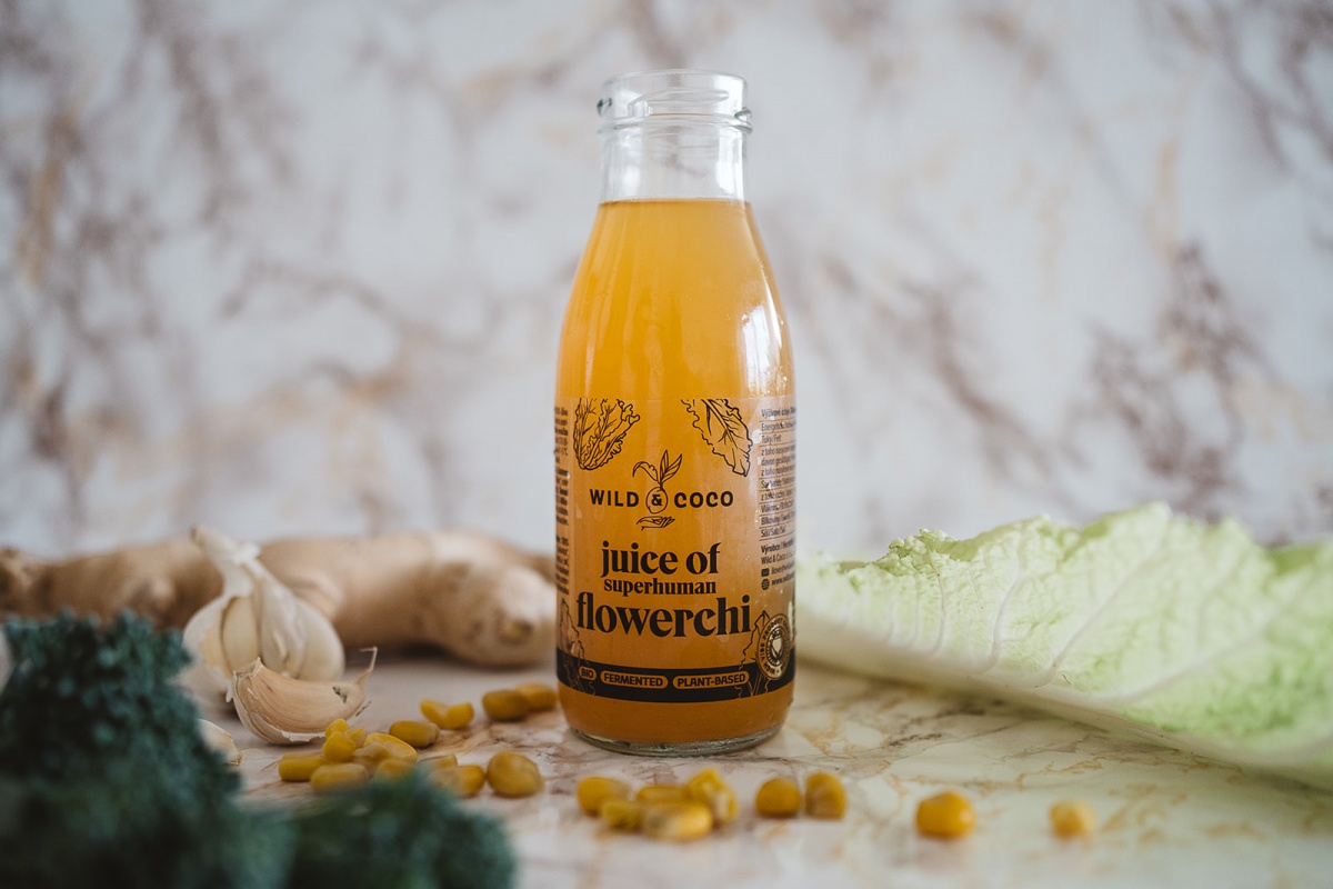 Fermentierter und super-lebendiger Saft von unserem feinen Superhuman Flowerchi! Er riecht und schmeckt dezent nach Curry. Eine Flasche enthält eine richtige Party an freundlichen Bakterien, die du in deinen Salatdressings oder Suppen genießen kannst.