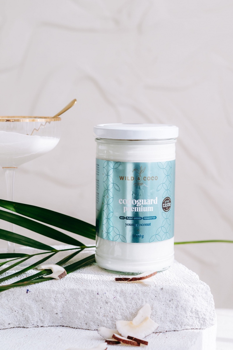 Z mladého kokosu (dužina i voda) a probiotik. Nic víc. O celé kouzlo se postará kvašení (fermentace). Díky tomu je Cocoguard stále živý.