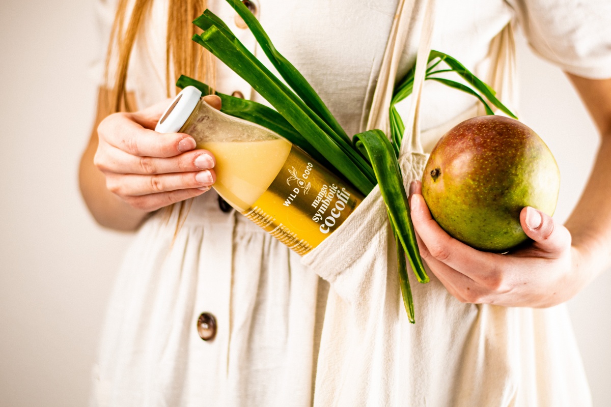 Extra živý fermentovaný nápoj z mladého kokosu sladce ladí s lahodným mangem.