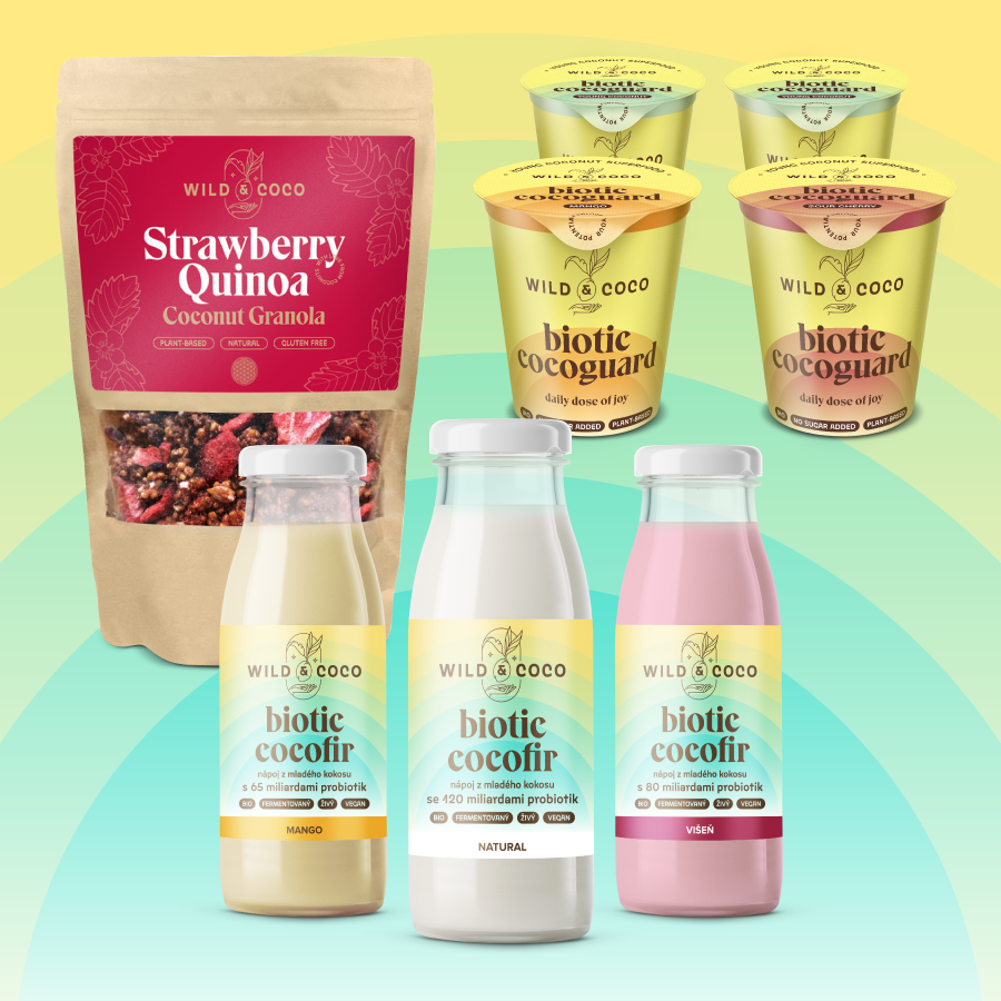 Přece proto, že se těším na snídani od WILD & COCO! V tomto balíčku na vás čeká oblíbená řada Biotic, fermentovaných produktů z mladého kokosu ve 3 lahodných příchutích. K nim jsme přidali naši oblíbenou Strawberry Quinoa Coconut Granolu, která neobsahuje lepek ani rafinovaný cukr a s probiotickým základem z Cocofiru či Cocoguardu si skvěle rozumí.