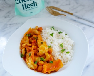 Kokosová dužina má mnoho využití. Jedním z nich je příprava receptů, v nichž v kombinaci s luštěninami a rýží vykouzlí doslova neodolatelný a jednoduchý, leč plnohodnotný pokrm. A ta jemná chuť kokosového mléka.. mňam!