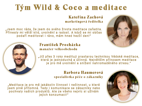 Pozitivní účinky meditace na vlastní kůži zaznamenává i náš tým, proto se někteří z Wild & Coco rozhodli tyto zkušenosti sdílet.