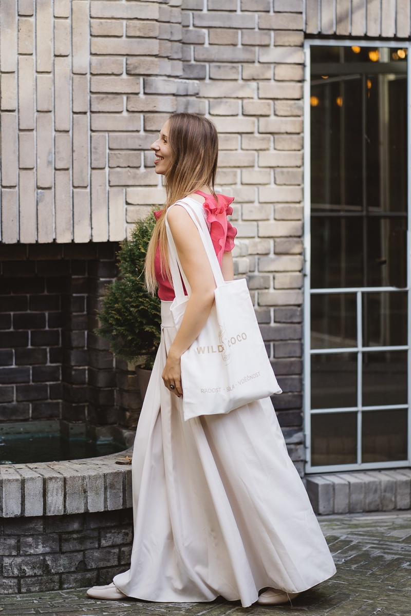 Je vyrobená z BIO bavlny a potlačená kľúčovými slovami našej spoločnosti: RADOSŤ, SiLA, VĎAČNOSŤ.