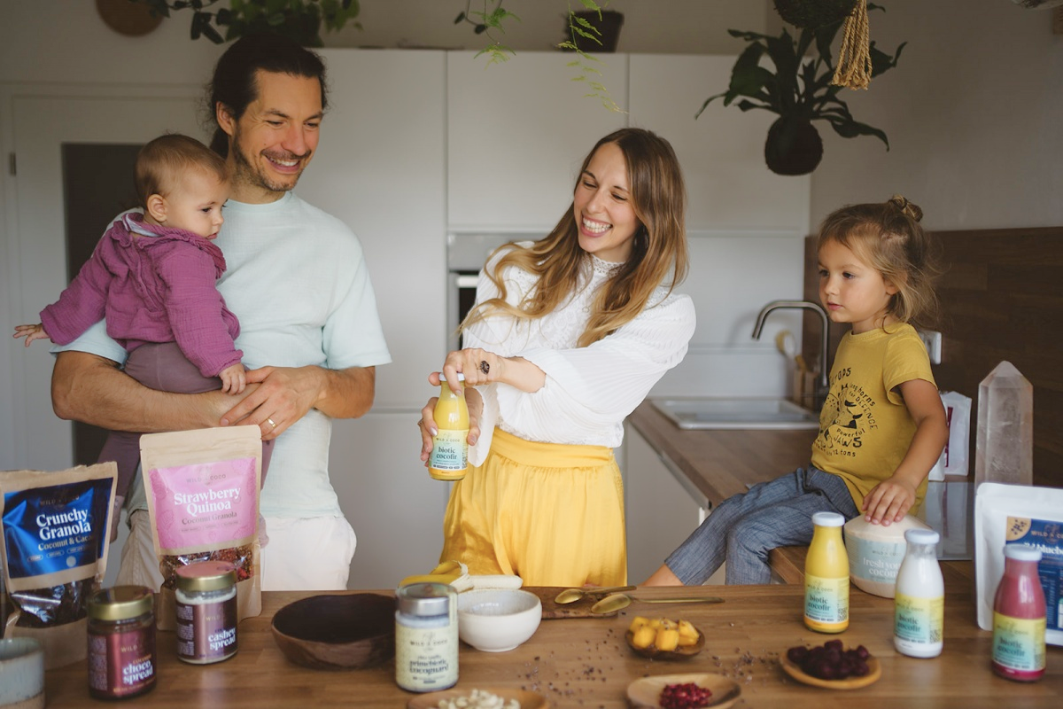 Rodinné raňajky 2.0 je balíček, ktorý chutí a zároveň dáva zmysel. Je postavený tak, aby si na ňom dali s chuťou dospelí aj deti: mango, čučoriedky, čokoláda, jahoda… a do toho jemná fermentácia, ktorá robí dobre brušku.