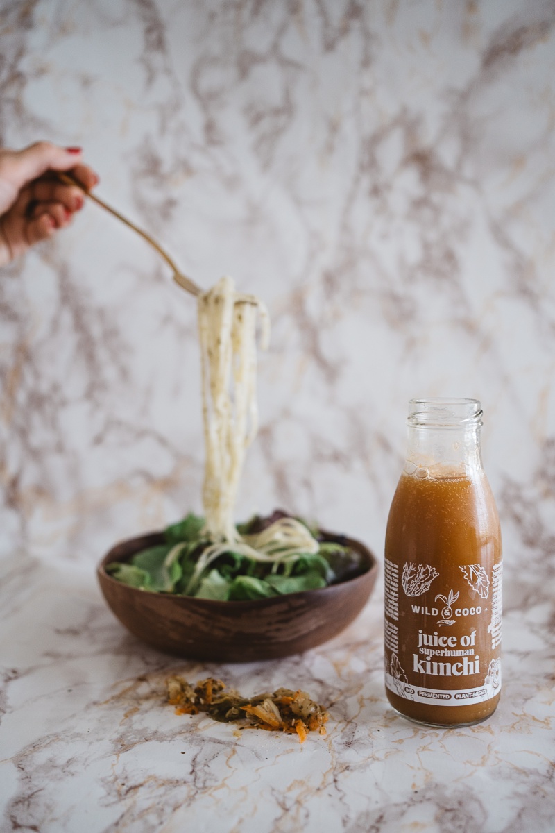 Takhle fermentovaná a jemně pikantní šťáva z našeho Superhuman Kimchi bude rozhodně patřit mezi nejživější složky vašeho jídelníčku. Jedna lahvička obsahuje hotový večírek pro přátelské bakterie, které se těší do vašich salátových dresinků či polévek.