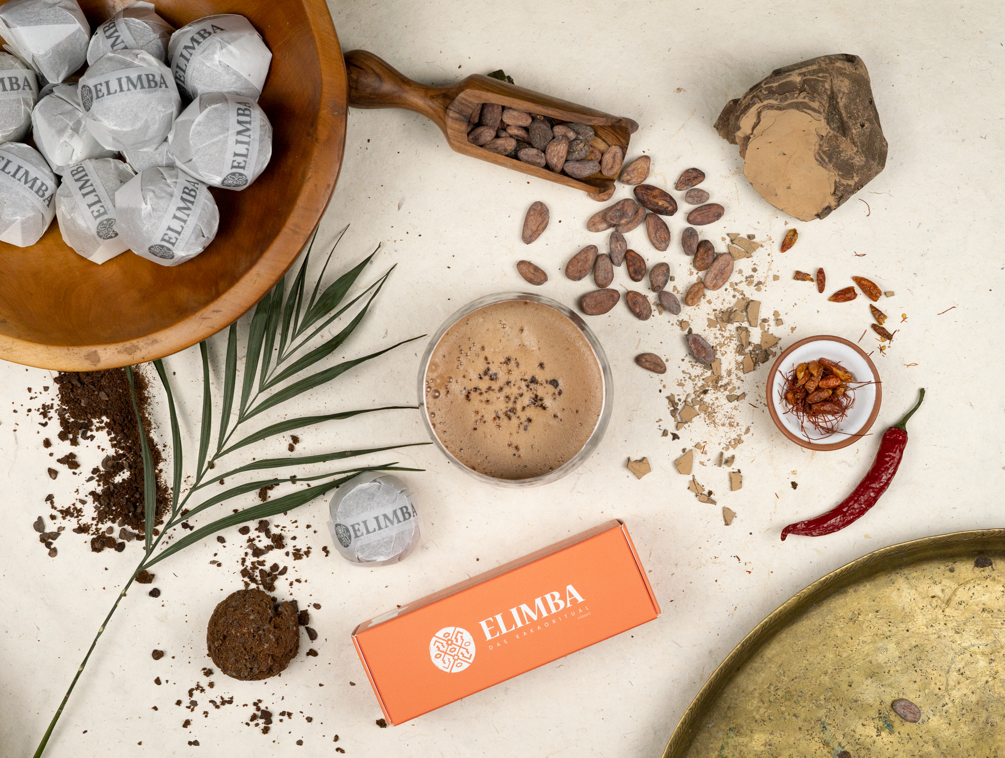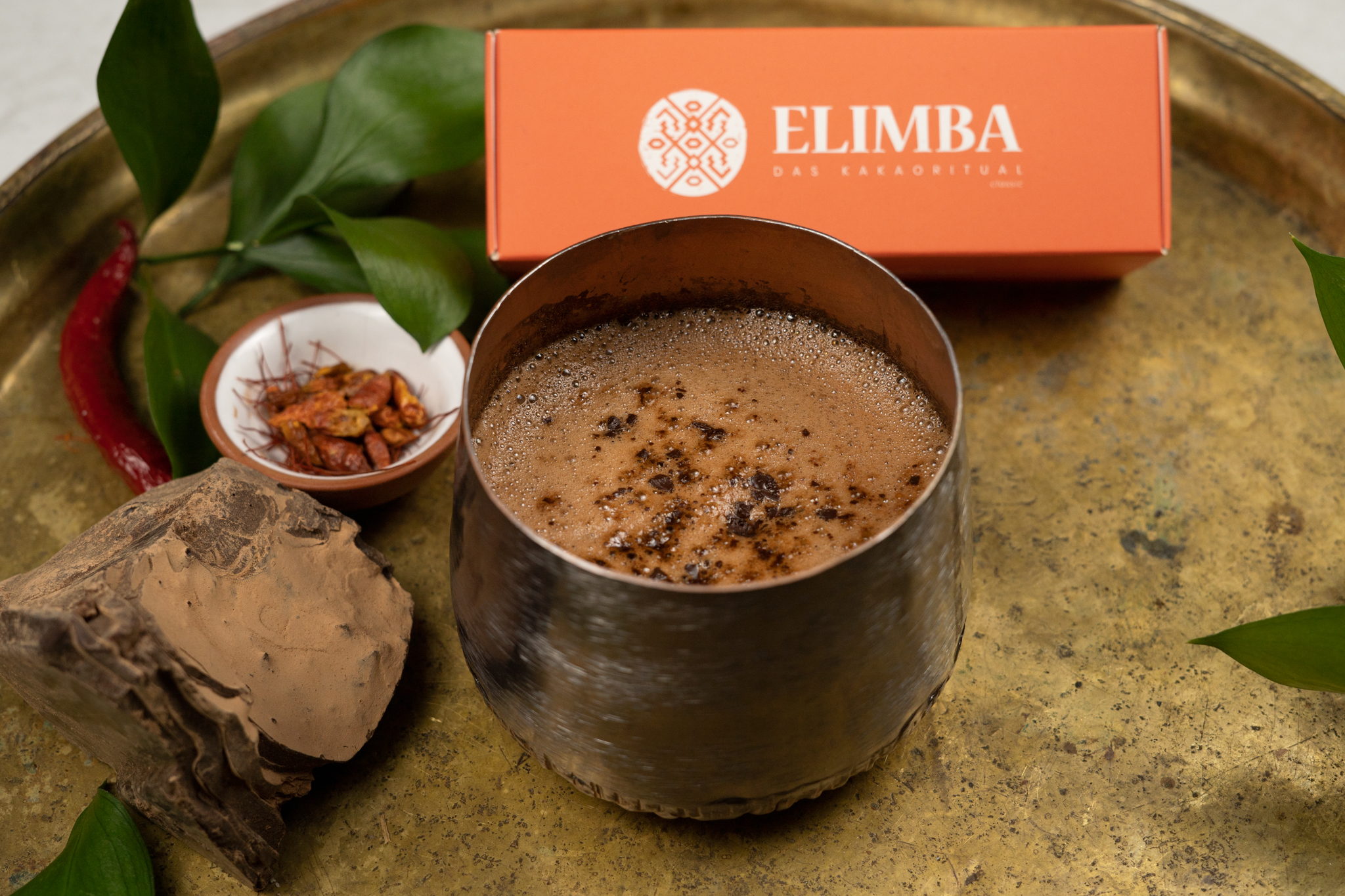 Kakaové boby, ze kterých je Elimba vyrobena, jsou ručně sbírány v peruánské oblasti Junin a následně jsou nadrcené, ale ne zcela do hladka, proto má kakao jemně křupavou konzistenci. Poté je kakao jemně dochuceno kokosovým cukrem a speciální směsí koření, která jim dodává lehce pikantní chuť. I díky tomu vás Elimba zahřeje, což oceníte především v chladnějších dnech.