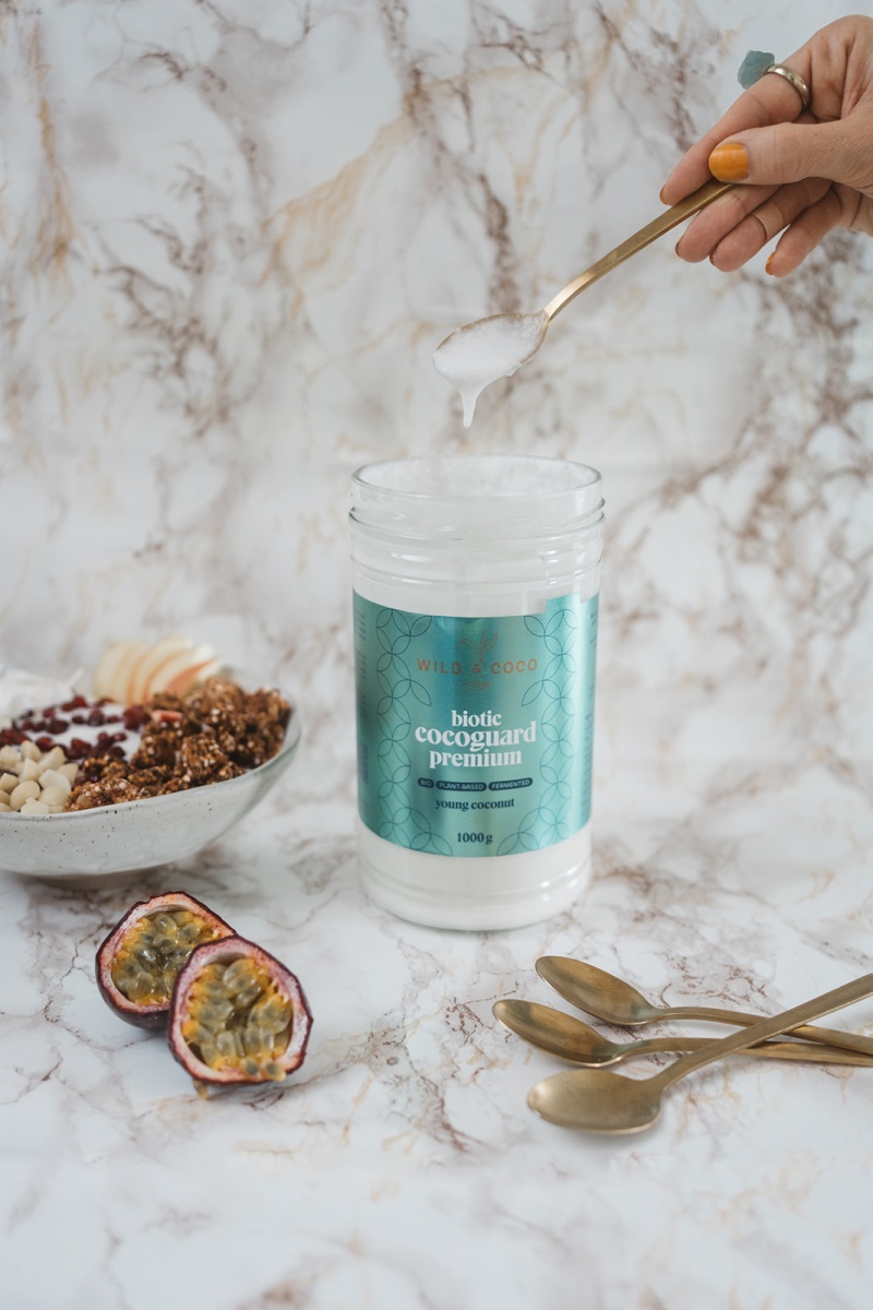 Z mladého kokosu (dužina i voda) a probiotik. Nic víc. O celé kouzlo se postará kvašení (fermentace). Díky tomu je Cocoguard stále živý.